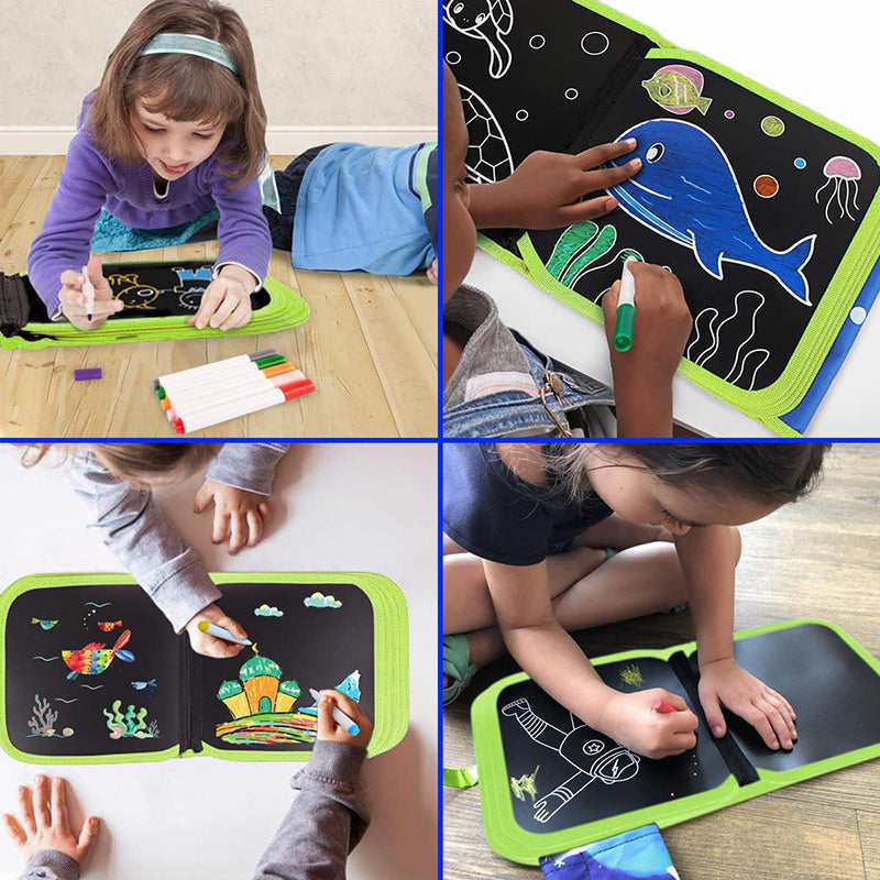- Opção 5: 1x Caderno de Desenho Apagável - Desenhe sem Limite - Livro Verde 14 Páginas + 12 Canetas