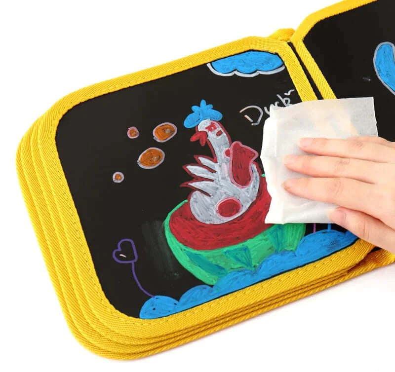 O Caderno de Desenho Apagável é seguro e não tóxico, o que garante a tranquilidade dos pais na hora de deixar as crianças brincarem. O design é atrativo e colorido, o que estimula a imaginação e a criatividade dos pequenos.